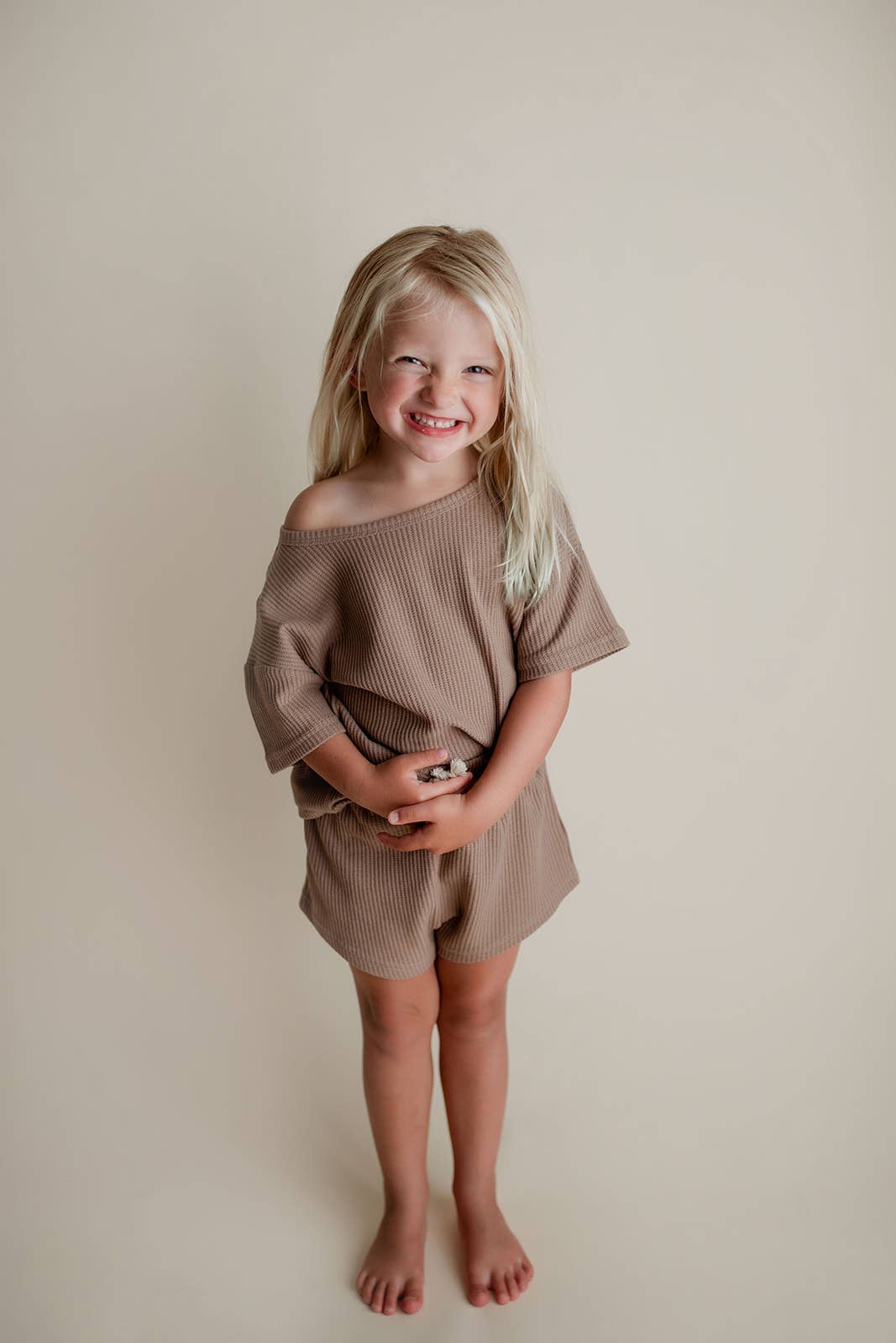 Crafted from premium waffle-knit fabric, this two-piece toddler set delivers both comfort and style. Features a functional and stylish drawstring. The rich brown tone pairs effortlessly with any wardrobe, while the textured weave provides breathability for active play. Perfect for layering or wearing separately, this versatile set transitions seamlessly from casual days to special occasions. An essential addition to any toddler's closet.