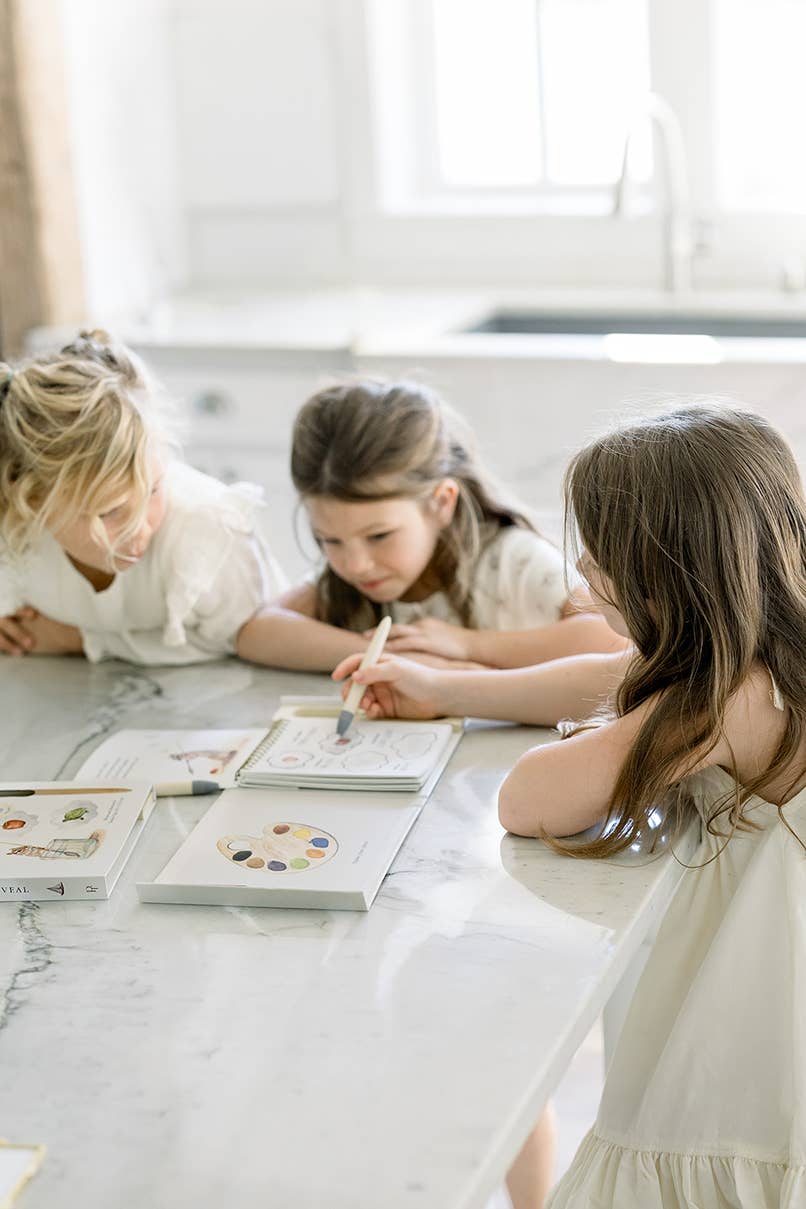 • Includes a chunky, easy-grip water pen that stores neatly in the spiral-bound format—great for travel